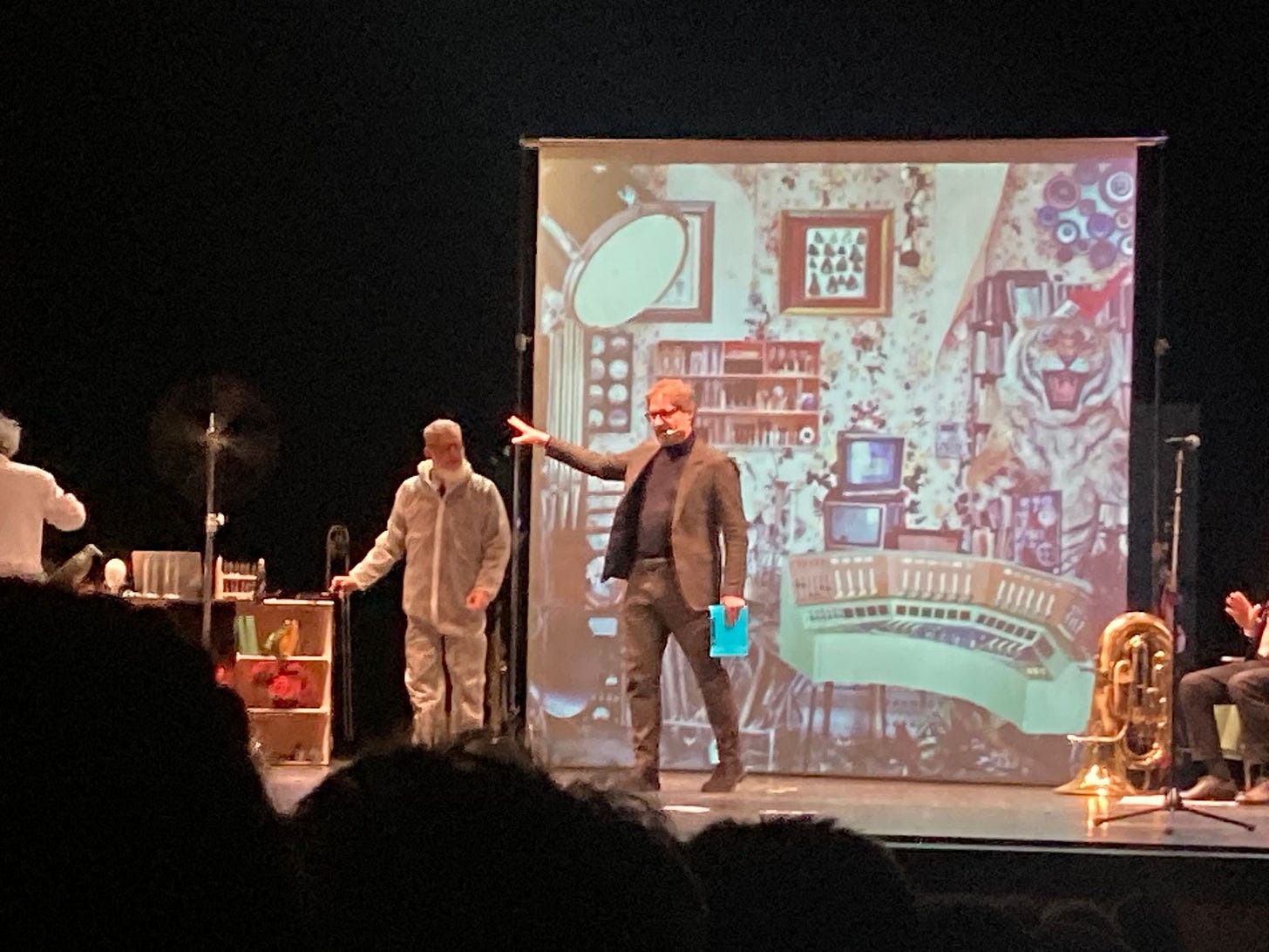 La foto è brutta ma lo spettacolo Allegro Bestiale con Telmo Pievani e la Banda Osiris è stupendo. Se vi capita, andateci.